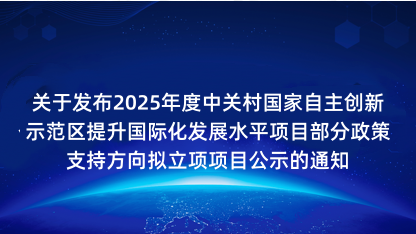 【通知】关于发布2025年度中关村国家自主创新示范区提升国际化发展水平项目部分政策支持方向拟立项项目..