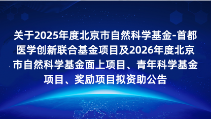 【公告】首都医学创新联合基金项目及2026年度北京市自然科学基金面上项目、青年科学基金项目、奖励项目..